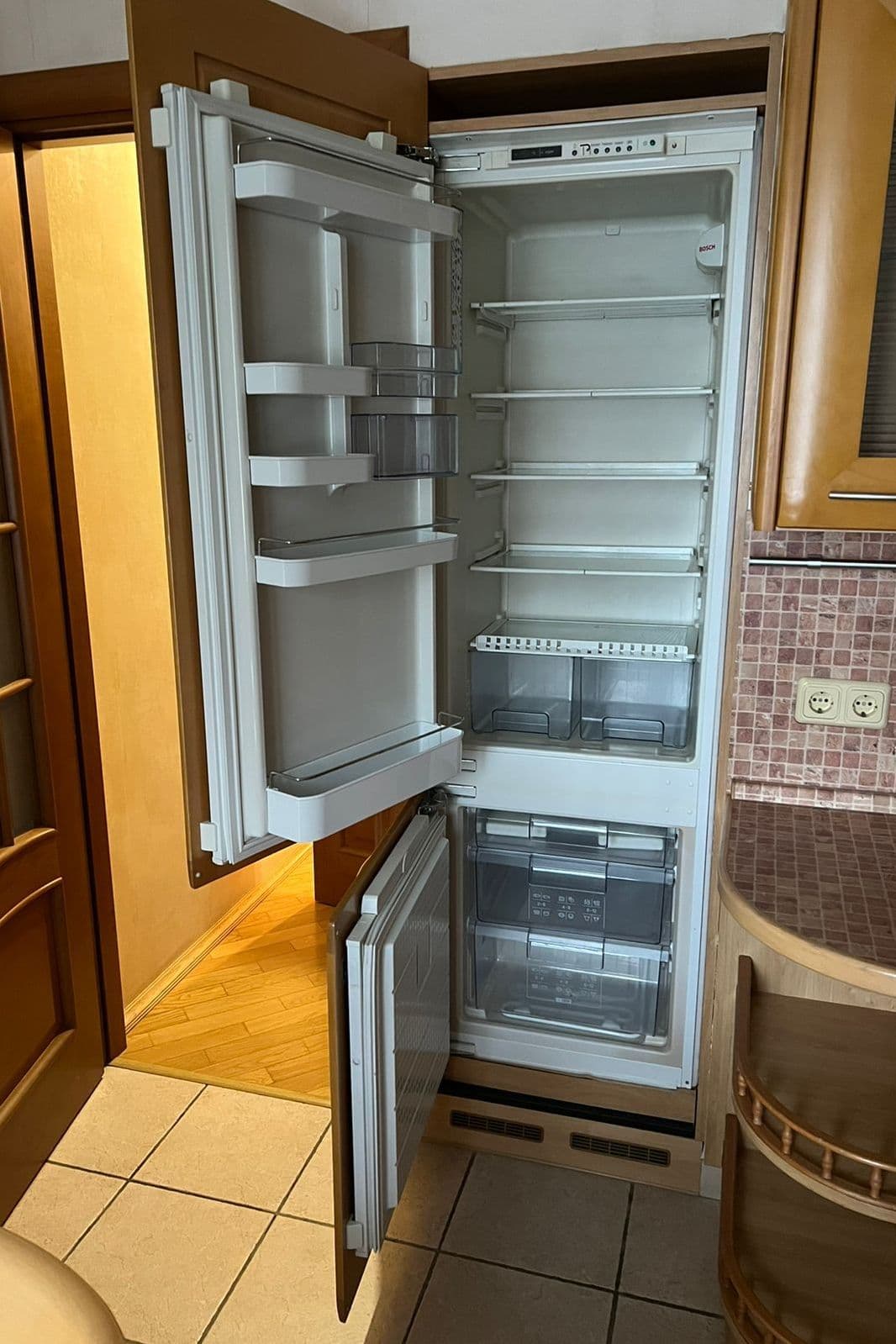 Свой большой склад запасных частей для ремонта дверей встроенных холодильников.